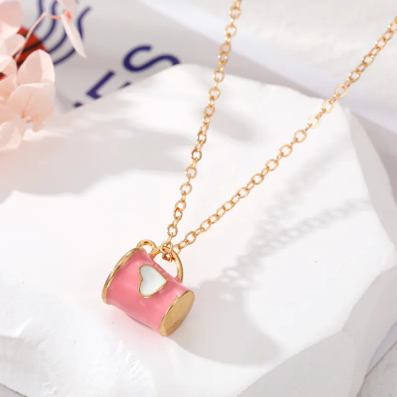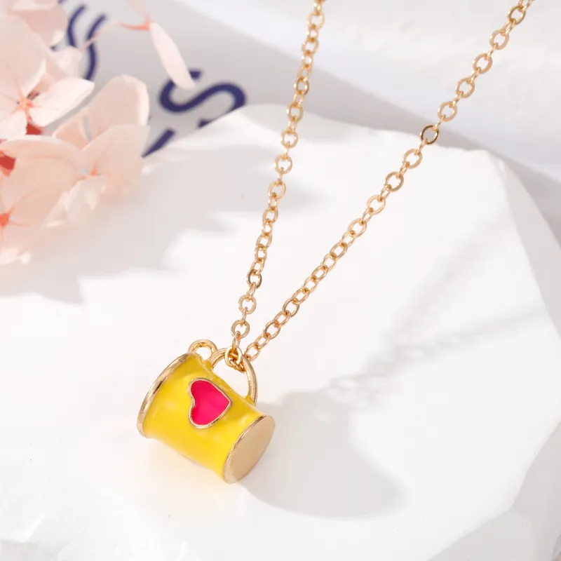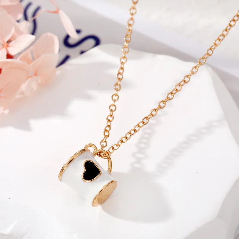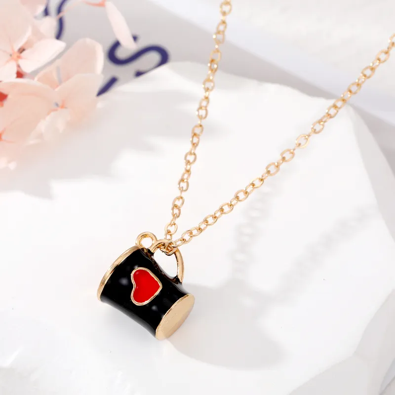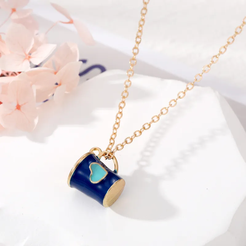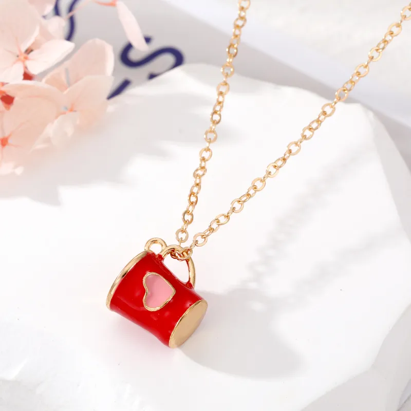 This charming necklace features an adorable coffee mug pendant, complete with a heart accent. Crafted with a gold-tone chain and enamel details, it’s a playful accessory perfect for coffee lovers or adding a whimsical touch to your everyday look.